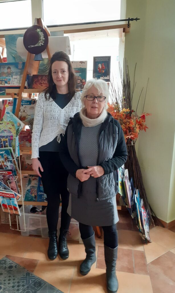 Přivítala mě paní Blanka Svobodová, jak jsem se dozvěděla, nejen knihkupkyně ale i výtvarnice. V prostorech knihkupectví visí na stěnách její díla a stůl s několika židlemi dává prostor pro vedení výtvarných kurzů pro děti pod jejím vedením. Výtvarno a knížky k sobě neodmyslitelně patří a vnímám to jako zajímavý a originální nápad.